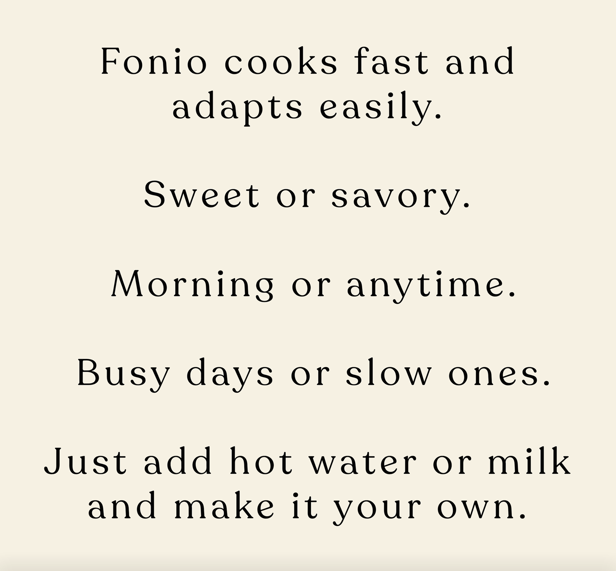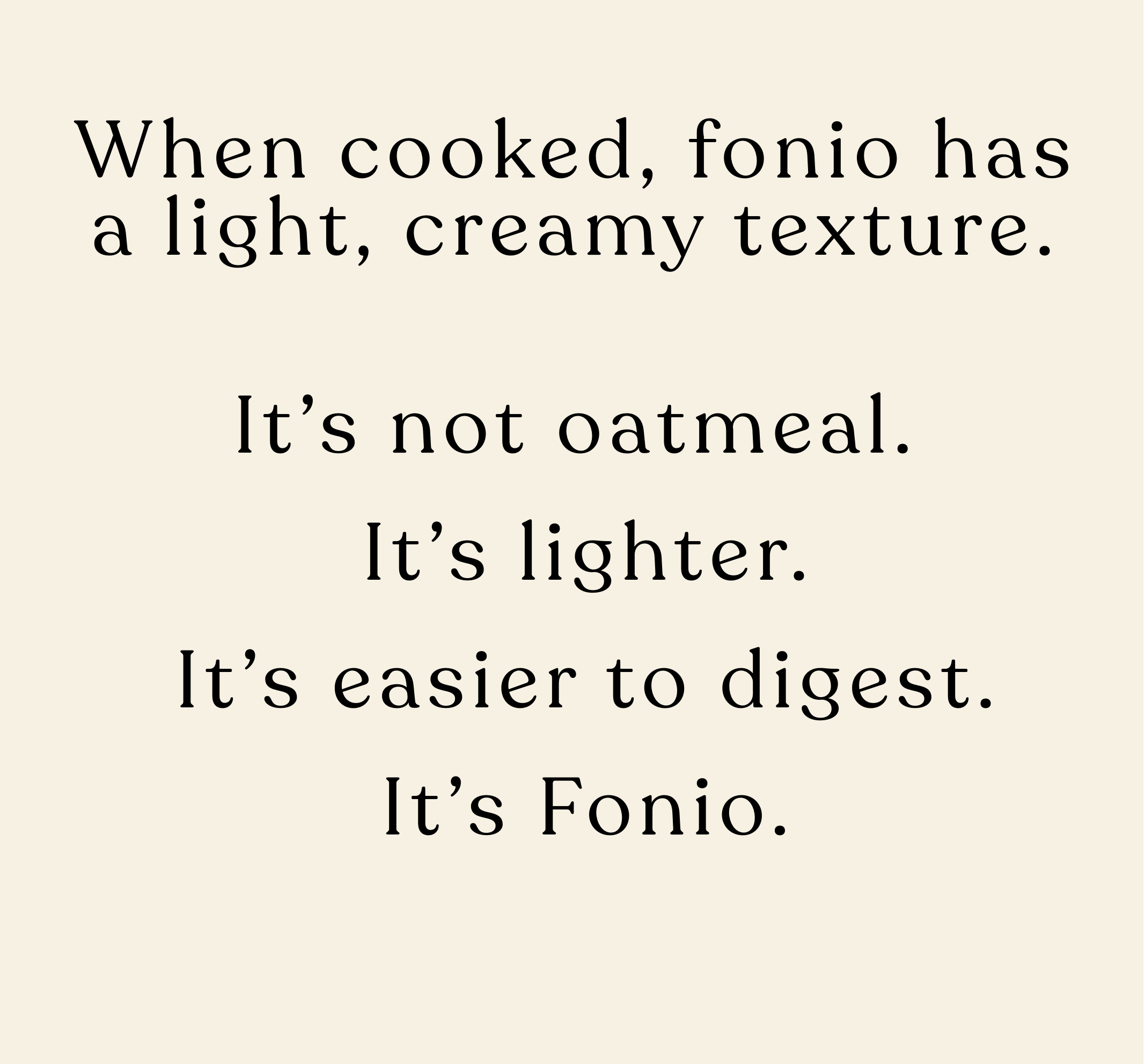 Fonio cereal sits between familiarity and discovery: comforting like a warm bowl of cereal, yet refreshingly different from oats and traditional porridge.